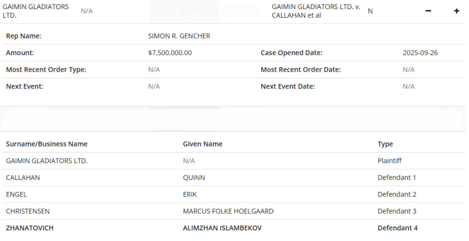 Клуб требует взыскать у киберспортсменов 7,5 млн канадских долларов ($5,3 млн). Ответчиками в деле выступят Квин «Quinn» Каллахан, Маркус «Ace» Хоэльгор, Эрик «tOfu» Энгель и Алимжан «watson» Исламбеков.