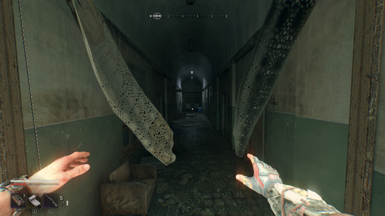Как только герой пролезает через окно, он оказывается в коридоре второго этажа — отсюда можно безопасно исследовать всё здание.