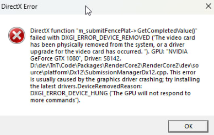 При появлении ошибки DirectX (особенно при активации генерации кадров):