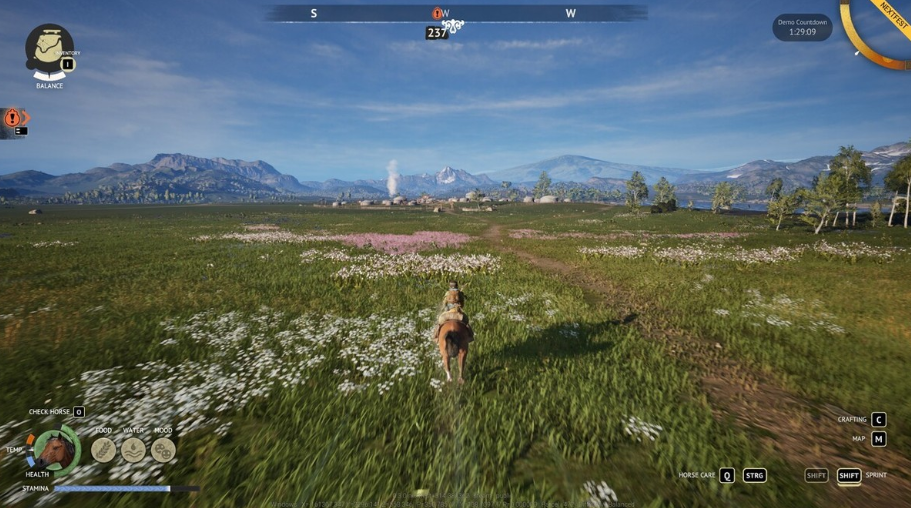 В демо полностью отсутствует боевая система, хотя в мире встречаются волки и медведи, а у персонажа есть лук.