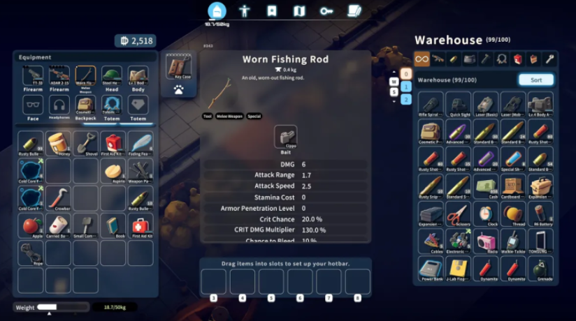 Чтобы использовать наживку, нужно открыть инвентарь, кликнуть по удочке и перетащить предмет в слот для приманки. Без этого процесс ловли не начнётся. Стоит отметить, что еда — печенье, консервы и прочие припасы — не подходят для рыбалки и не могут заменить наживку.
