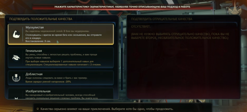 Черты характера дают уникальные бонусы и формируют стиль игры. Игрок может выбрать одну из девяти стартовых черт: