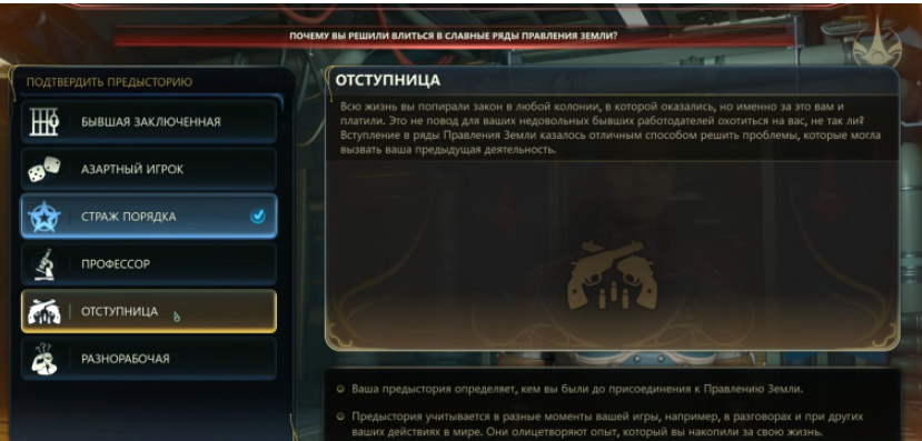 В Outer Worlds 2 шесть стартовых предысторий, каждая из которых формирует уникальный фон персонажа и открывает особые варианты диалогов.