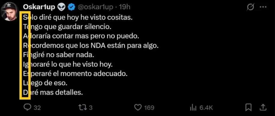 На прошлой неделе спанский контент-мейкер oskar1up, специализирующийся на освещении проектов Bethesda, опубликовал в твиттере зашифрованное сообщение о грядущих обновлениях для Starfield. Внимательные пользователи заметили, что первые буквы каждого предложения в его посте складываются в слово “STARFIELD”.