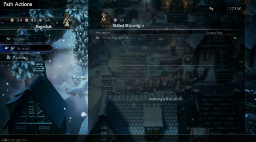 - Поиск мастера. Второй вариант позволяет значительно сэкономить и считается более элегантным решением. Вместо траты денег необходимо отправиться в город Эмберглоу (Emberglow). Оказавшись на месте, следует найти Опытного Кораблестроителя, который обычно стоит прямо перед входом в магазин предметов. Используя доступные героям действия пути, необходимо сначала расспросить мастера, а затем «Нанять» (Recruit) его в свою команду. После этого кораблестроителя нужно доставить обратно в Рипплтайд к Марджиму. Присутствие специалиста позволит завершить ремонт без колоссальных денежных затрат.