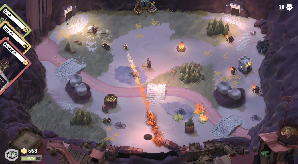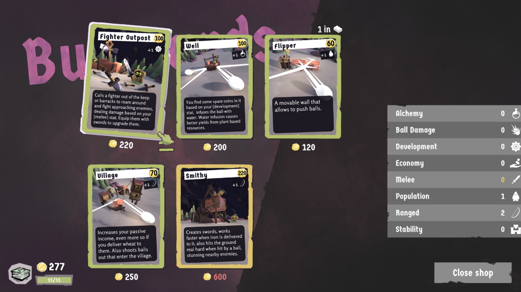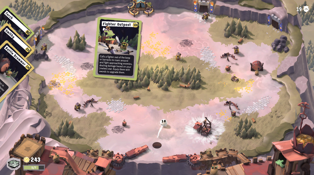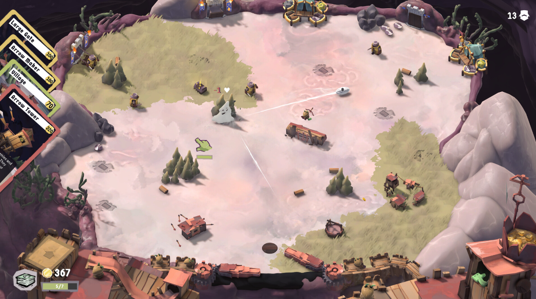 В PinKeep игроку предстоит оборонять собственную крепость от волн врагов, манипулируя шаром как в классическом пинболе. С его помощью можно заходить противникам в тыл, пробивать защитников со щитами, доставлять ресурсы торговцам и взаимодействовать с постройками на поле. Окружение играет важную роль – грамотно размещённые структуры позволяют направлять шар, усиливать урон и создавать эффективные цепочки действий.