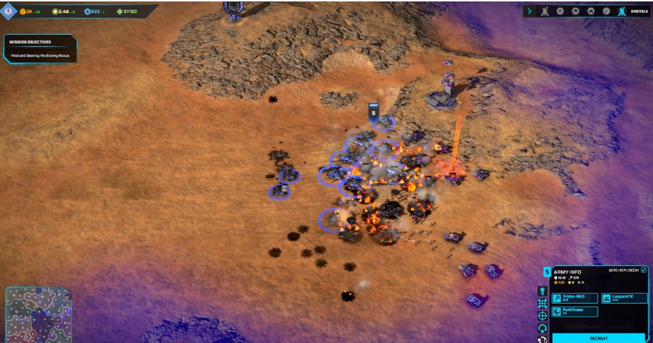 Вместо постоянных возвратов на базу для выбора следующих юнитов и ручного распределения по группам после производства игроки открывают меню состава армии и просто добавляют или убирают нужные силы. Галочка включает или отключает автоматическое пополнение. Как только новые подкрепления готовы, они развертываются и сразу направляются к актуальной позиции своей армии. Крайне полезное улучшение качества жизни.