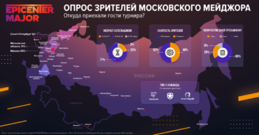 Половина гостей ЦСКА Арены — москвичи или жители Москвы, еще 14% зрителей турнира EPICENTER Major приехали из Московской области. Третью строчку рейтинга забрали жители Питера (9%). Множество гостей турнира приехали издалека: например, из Якутска, Владивостока, Иркутска, Красноярска и Кемерова. Всего в опросе приняли участие жители из 39 различных городов России и трех других стран (Казахстана, Киргизии и Беларуси).
