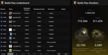 По данным портала, тысячного уровня боевого пропуска, за который дают миниатюрный Аегис, достигли почти 33 тыс. человек. Преодолеть отметку в 225 уровней удалось 311,4 тыс. пользователей, а в 75 — 772,5 тыс. игроков. 1,5 млн геймеров еще не прокачали свой Battle Pass 2020 до 75-го уровня.