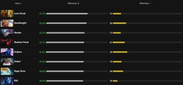 А вот герои, которые имели высокий винрейт до выхода нового патча сильно пострадали. Из таких можно выделить: Death Prophet – 37.4%, Enchantress – 43.3%, Storm Spirit – 46.2%, Necrophos – 46.6%, Primal Beast – 46.9% и Tiny – 49.9%. До выхода нового патча эти герои имели свыше 50% винрейта.