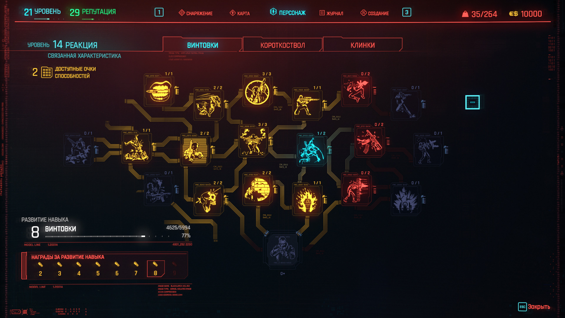 Если вам нравятся перестрелки и сражения с использованием огнестрельного оружия, вкладывайте очки характеристик в реакцию и технику. Повышение реакции позволит усилить критический урон. Усиление техники повысит эффективность использования технического оружия, а также позволит создавать новое снаряжение. Вот перки, которые желательно разблокировать для текущего билда.