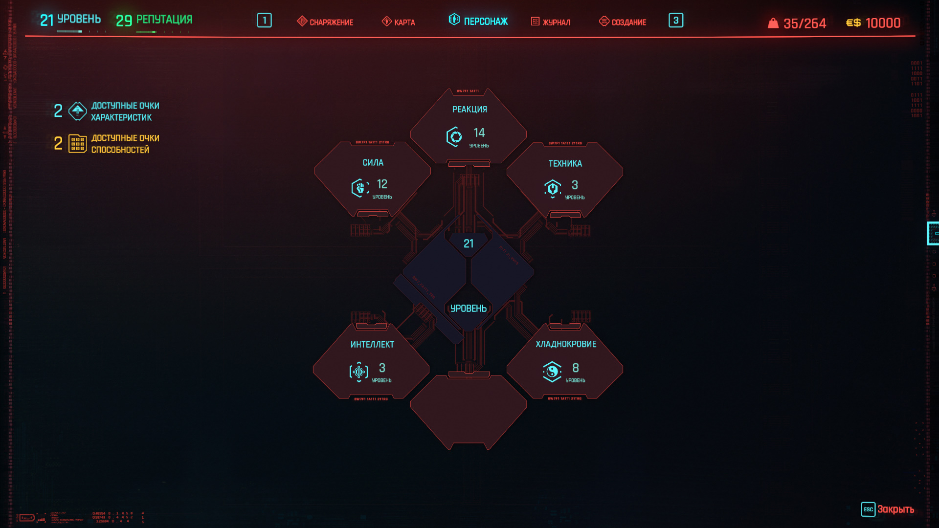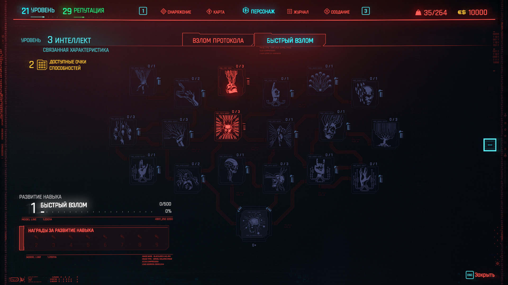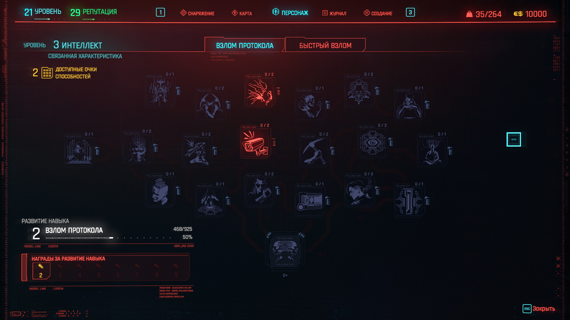 Технологии в мире Cyberpunk 2077 — одновременно инструмент и оружие. Хакеры в Найт-Сити называются нетраннерами, и, если решите заниматься взломами, рекомендую сосредоточиться на улучшении интеллекта. Чем больше уровень интеллекта Ви, тем больше очков памяти будет доступно для активации всех хакерских умений. Воспринимайте оперативную память как ману в фэнтезийных ролевых играх, где есть волшебники. Чем больше оперативной памяти, тем больше навыков вы сможете активировать за ограниченный промежуток времени.