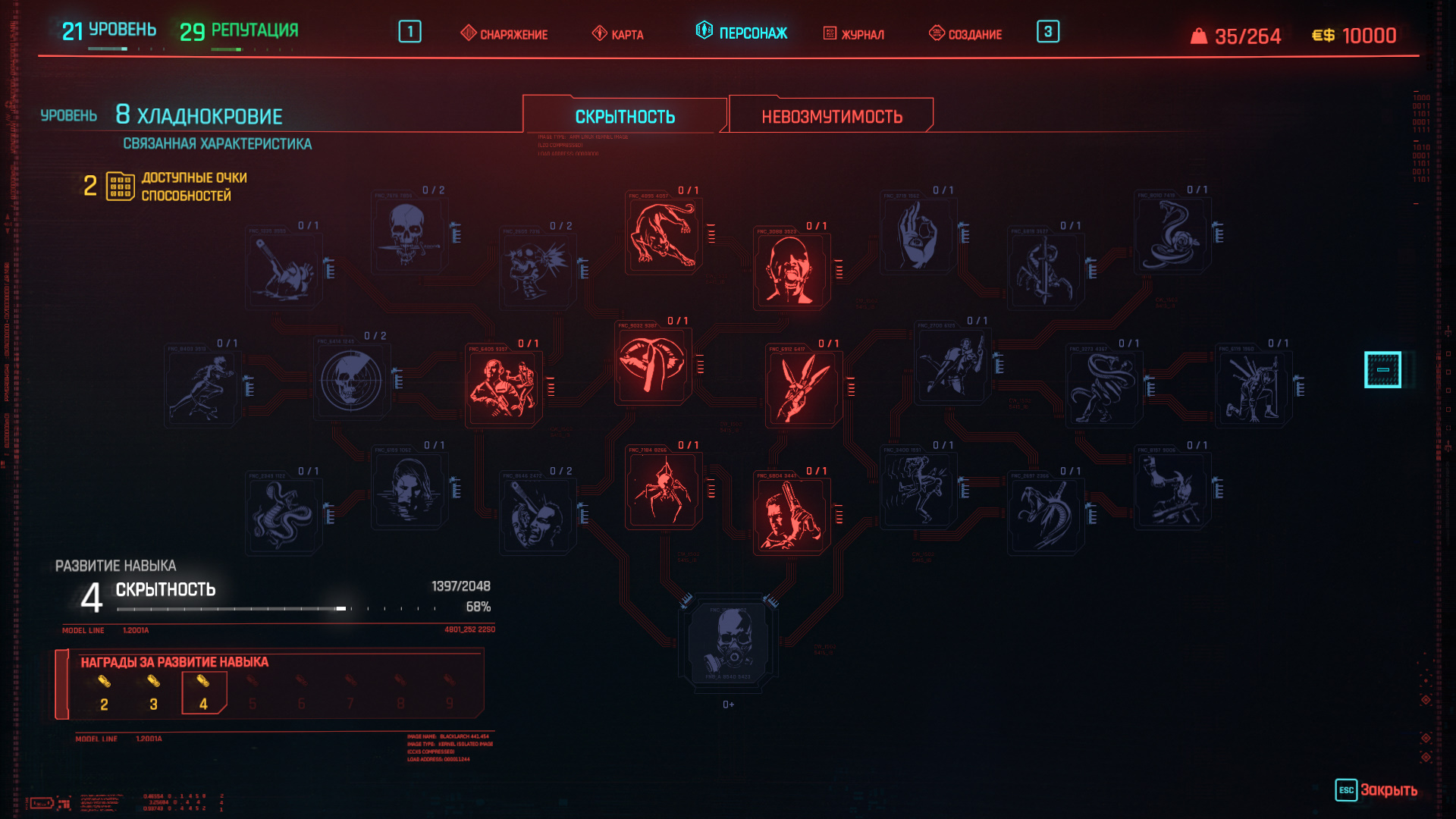 Игра в скрытность требует использования физических и кибернетических способностей, чтобы преследовать и подкрадываться к врагам. Если хотите действовать незаметно и устранять цели несмертельными методами, задумайтесь над повышением характеристики «Хладнокровие». Есть навыки и из других характеристик, которые могли бы вам пригодиться.