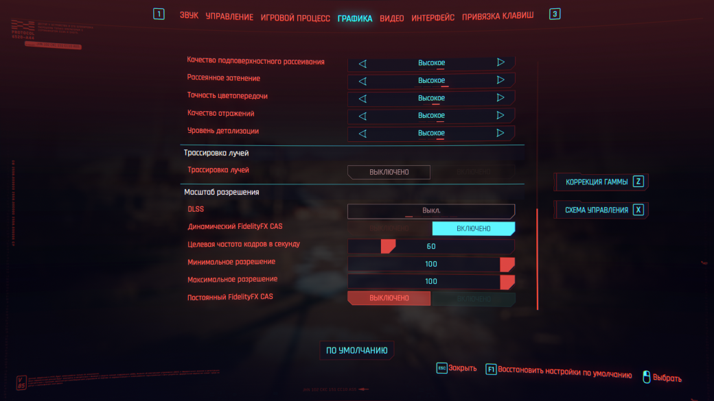 Что вообще делает эта технология? Автоматически снижает ваше разрешение экрана до определенного, чтобы достичь заданного количества кадров в секунду. В случае с динамическим FidelityFX Cas это будет происходить в основном в тяжелых сценах, когда ваша система, что называется, «не вывозит». Чтобы настройки заработали, вы должны выставить желаемую частоту кадров (меньше 60 ставить особого смысла нет, но в том случае, если у вас игра даже в 30 кадрах работает из рук вон плохо, ставьте 30), а также минимальное и максимальное разрешение экрана.