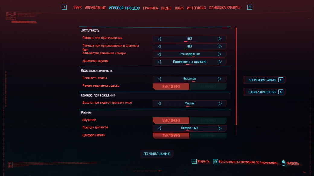 Настройка игры и описание на данной конфигурации: