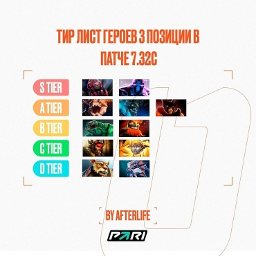 Игрок One Move Василий «AfterLife» Шишкин состав тир-лист лучших героев третьей позиции в Dota 2. Список актуален на момент патча 7.32c.