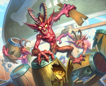 Олды вспомнят старый набор «Гоблинов против гномов», в котором были механизмы и гоблины. Похоже, разработчики вдохновлялись старым сетом при создании нового легендарного «Голиафа» и «Ополоумевшей подрывницы». Три остальных карты связаны с пиратами. Первый кандидат на нерф Мистер Каюк дает всем пиратам рывок, при этом он сам пират, поэтому Воин существенно усилится. А «Проглот Голакка» создан, чтобы контрить Охотников и Друидов, чтобы выживать против них в ранней игре.