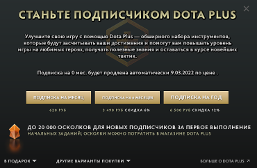 Цены на Dota Plus для игроков из России: