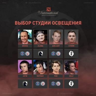 Дмитрий «Droog» Чумаченко, Сергей «Smile» Ревин, Александр «nofear» Чурочкин и Артёма «Fng» Баршак считают, что первое место займёт PSG.LGD. Алексей «Solo» Березин и Алексей «Storm» Туманов склоняются в сторону Evil Geniuses, а Дмитрий «zloba» Иринчук и Егор «JotM» Сурков верят в Liquid.