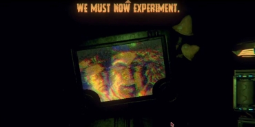 Дальше вам нужно попасть в Ботопию в 3-ем акте и добраться до путевой точки в восточной части локации. В правом нижнем углу экрана вы найдете диагональную стрелку – единственную в своем роде, больше нигде в Inscryption такая не встречается. Стрелка указывает на помещение, зайдя в которое вы окажитесь перед дверью, запертой на голографический замок.