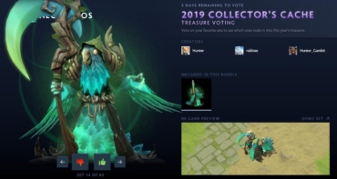 В этом году разработчики Dota 2 предоставили сообществу право выбрать, какие из сетов будут добавлены в сокровищницу Collector’s Cache 2019. Для этого Valve перенесли в клиент игры несколько десятков лучших работ из Мастерской Dota 2 и добавили возможность голосования, в котором могут принять участие владельцы Боевого пропуска The International 2019.