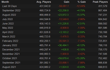 По сравнению с предыдущим месяцем, средний онлайн Dota 2 уменьшился на 12%. Последний раз такое резкое падение случалось в сентябре 2017 года, когда это значение уменьшалось сразу на 11,7%. Пиковый онлайн в октябре упал с 867 тыс. до 811 тыс. пользователей.