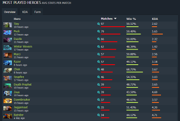 В число наиболее популярных героев также попали Puck (79) и Dazzle (66). Следом разместились Winter Wyvern (62), Marci (57) и Razor (57). Остальных героев пикали меньше чем в 50 играх.
