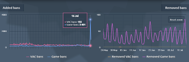 Valve провела масштабную волну блокировок в CS:GO. В период с 14 по 17 июля разработчики наложили ограничение более чем на 6 тыс. аккаунтов — в обычные дни санкциям подвергаются в среднем до 150 учётных записей. Статистику предоставил сервис ConVars.