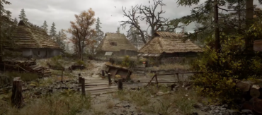 Демонстрация включает целый комплекс строений в традиционном славянском стиле: дома с соломенными крышами, деревянные амбары и хранилища. Разработчики добавили разнообразные атмосферные эффекты — от яркого солнечного света до мрачной облачности, что делает окружение живым. Также здесь присутствуют такие элементы, как дровяные склады, заборы, телеги и зоны хранения, которые придают локации реалистичность.